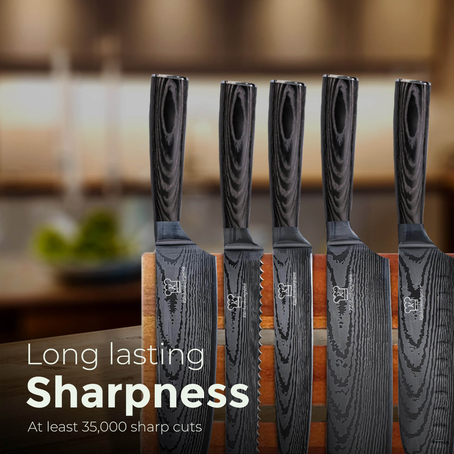 De messen hebben alle eigenschappen die een perfect keukenmes nodig heeft: