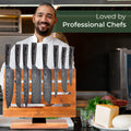 Geen belasting meer op de handen – het ergonomische handvat zorgt voor comfort, zelfs tijdens lange snijsessies. Het beste van alles? De set bevat het perfecte mes voor elke taak.