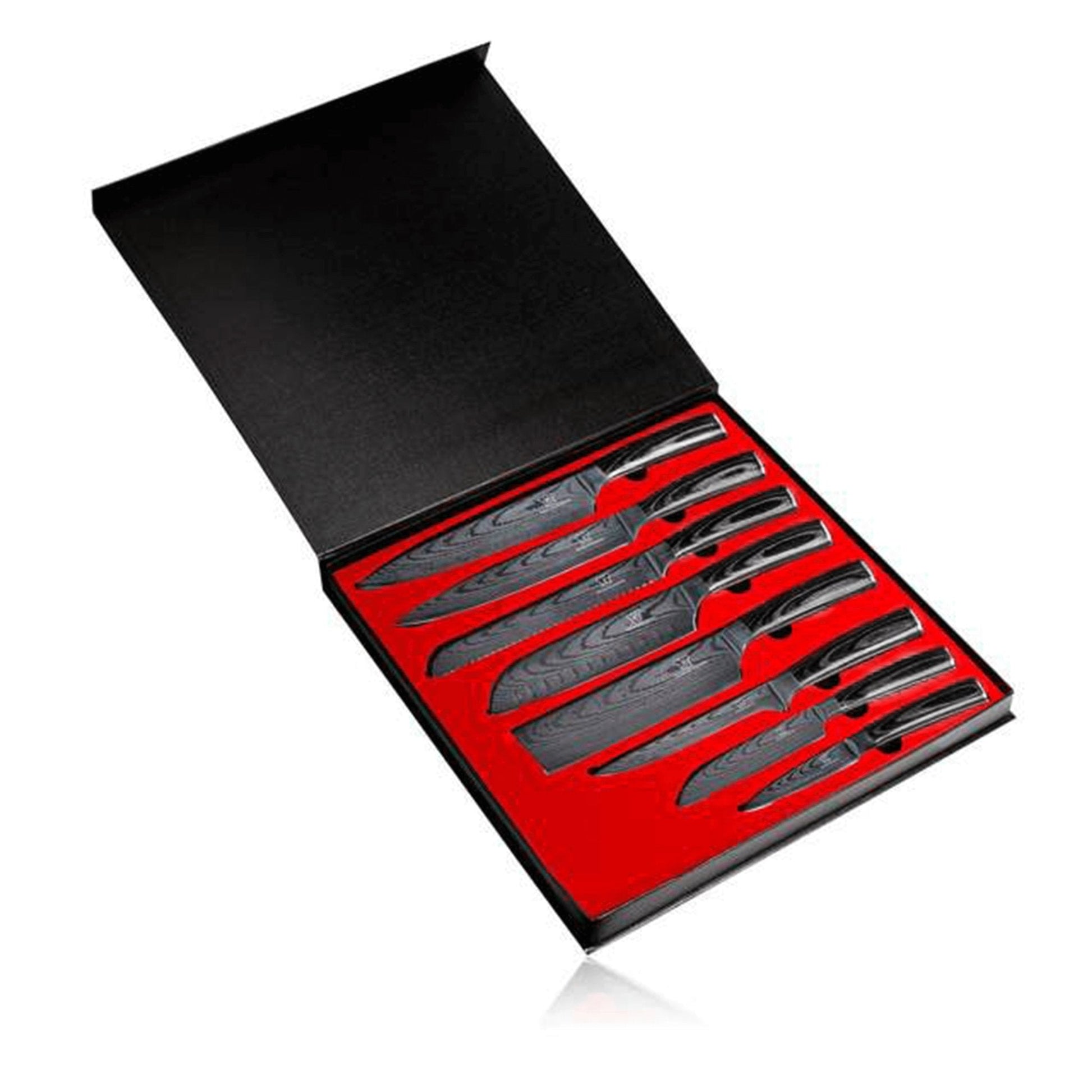De messen worden geleverd in de getoonde messenbox, die bij de prijs is inbegrepen.