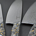 Küchenkompane-messen zijn met de hand gesmeed uit traditioneel Japans Damaststaal, wat zorgt voor uitzonderlijke scherpte, duurzaamheid en balans. Ze zijn ontworpen voor nauwkeurigheid en snijcomfort – een must voor zowel professionele als hobbykoks.
