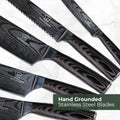 Geen belasting meer op de handen – het ergonomische handvat zorgt voor comfort, zelfs tijdens lange snijsessies. Het beste van alles? De set bevat het perfecte mes voor elke taak.